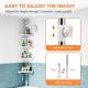 Étagère de douche réglable : la hauteur du support de douche est réglable de 241 à 299,7 cm sans couper les tuyaux. La tige d’extension a un verrou stable, et le fond contient un fort ressort de tension pour garantir que l’ensemble du pôle magnétique est très fermement fixé en place, empêchant efficacement la tige de tension de glisser.
