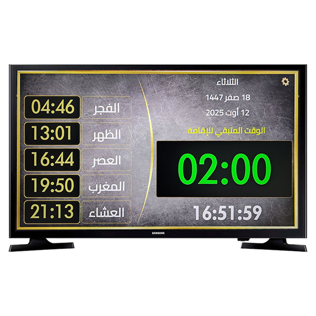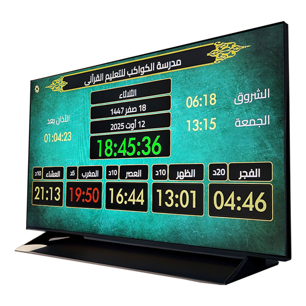 ✨ الحل الأمثل للمساجد، المؤسسات، وحتى البيوت لعرض مواقيت الصلاة بدقة ووضوح ✨