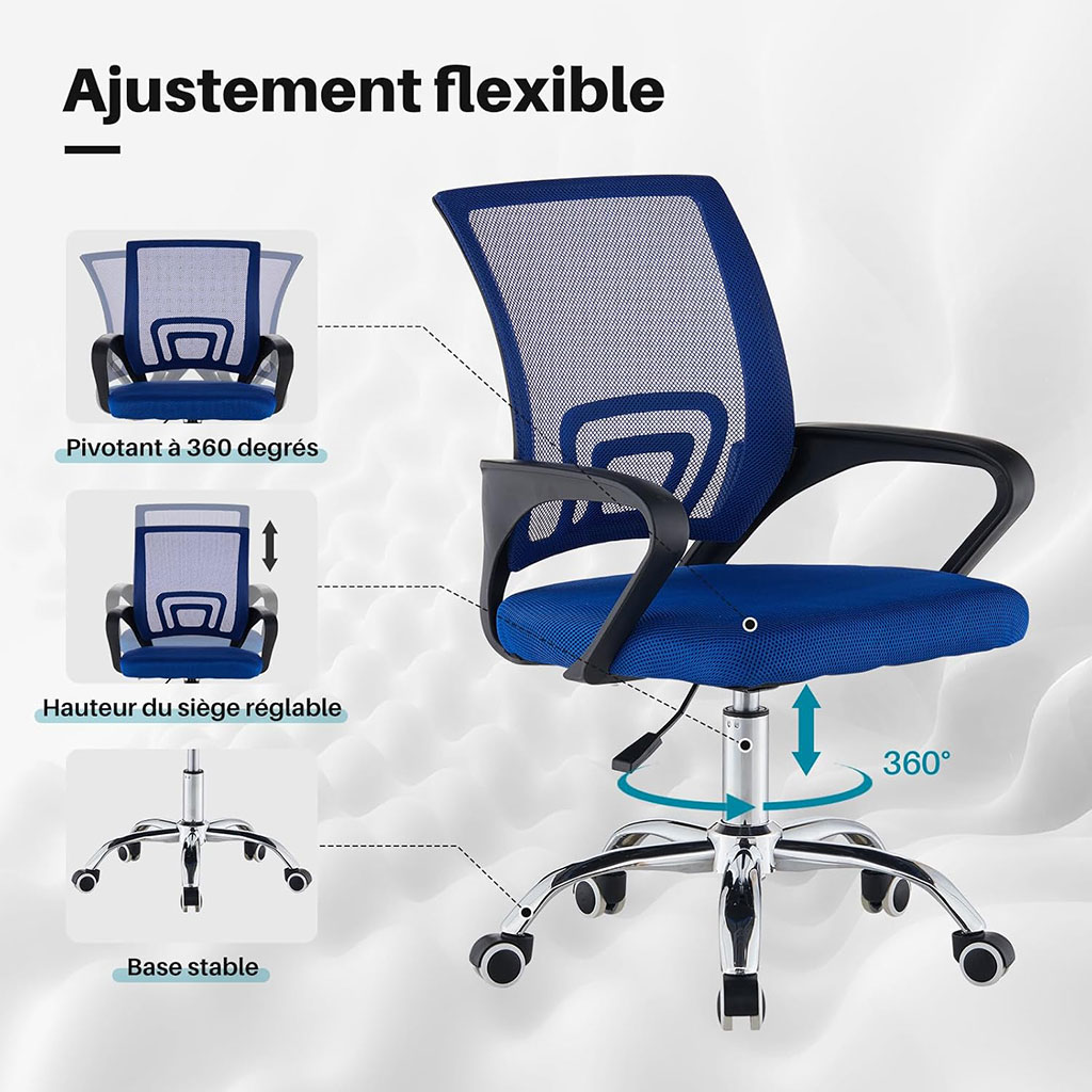 Chaise de Bureau Ergonomique avec Support Lombaire Bleu – كرسي مكتب مريح مع دعامة للظهر