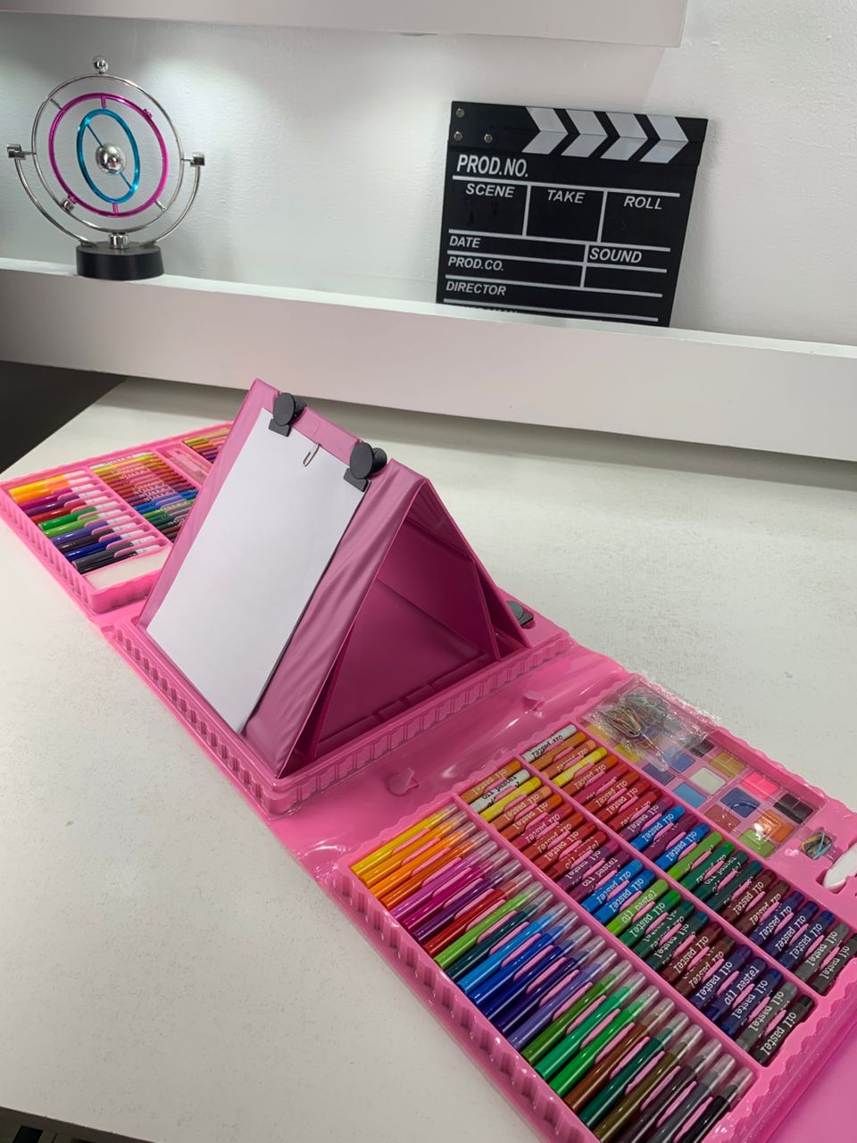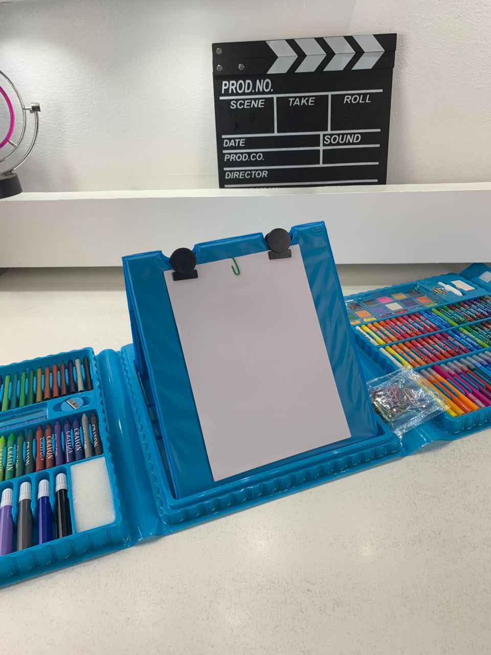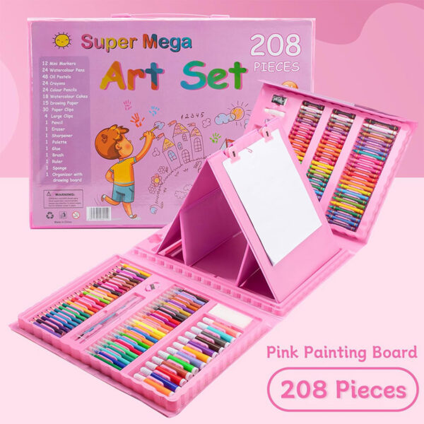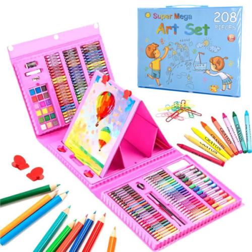 طقم رسم عالي الجودة يحتوي على 208 قطعة من أدوات التلوين والرسم، لتلبية احتياجات الفنانين من جميع الأعمار.