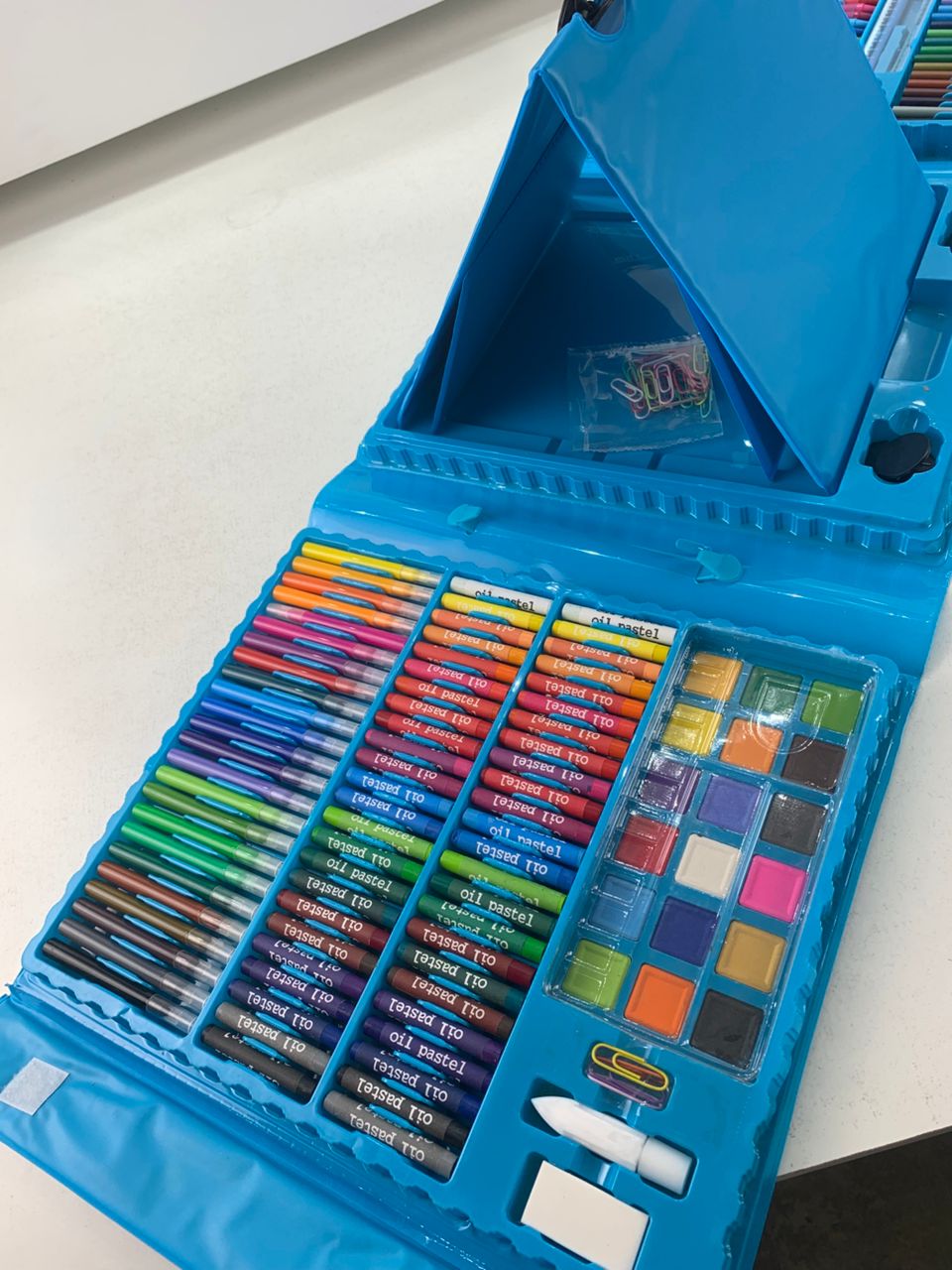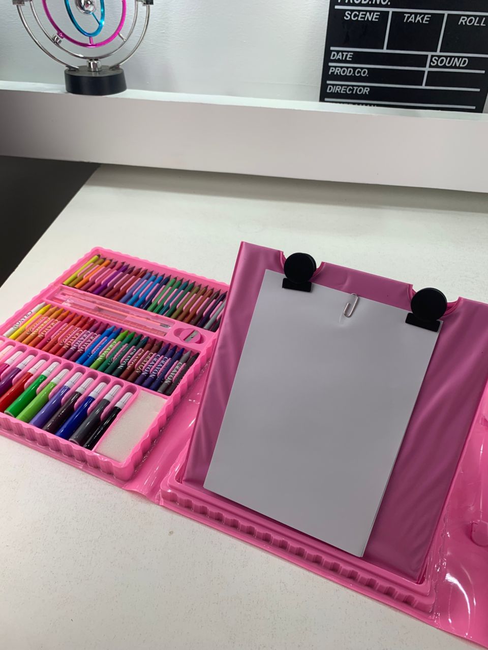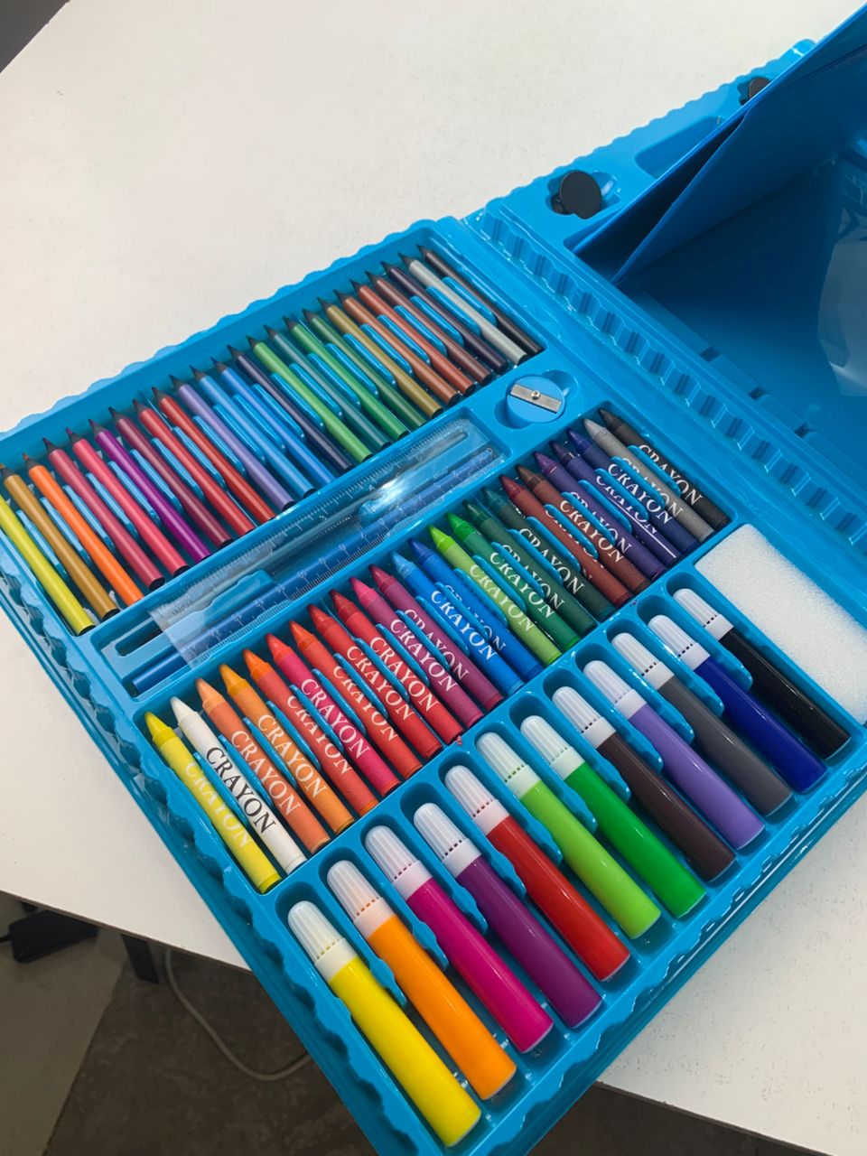 طقم رسم عالي الجودة يحتوي على 208 قطعة من أدوات التلوين والرسم، لتلبية احتياجات الفنانين من جميع الأعمار.