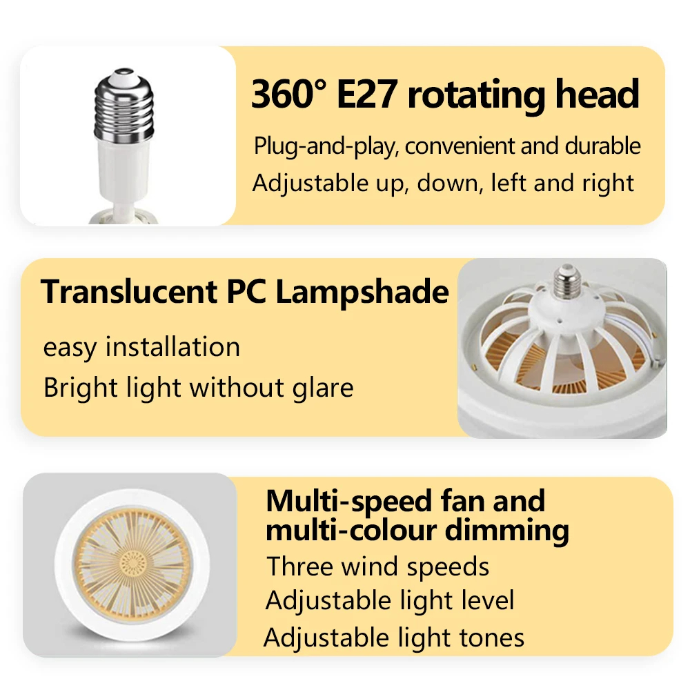 ✔️ تصميم ذكي ومزدوج : مروحة سقف مدمجة مع مصباح إضاءة، شكل عصري وأنيق أكثر أماناً وفعالية من المصابيح التقليدية. استمتع بضوء قوي وهواء منعش في نفس الوقت، مع إمكانية تشغيل كل وظيفة بشكل مستقل حسب الحاجة.