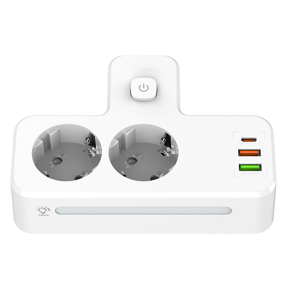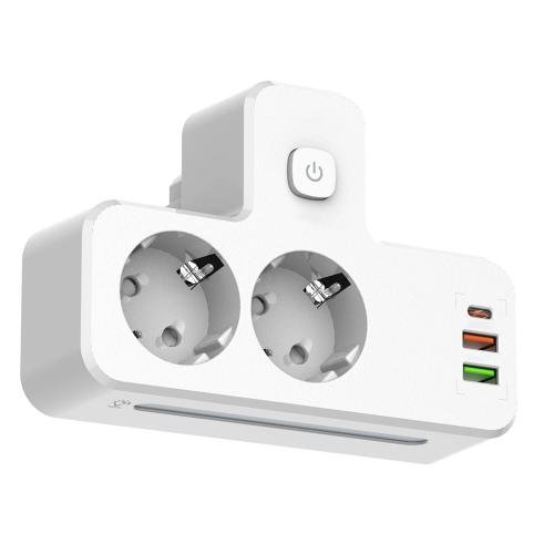 🔌⚡ مقبس جداري متعدد الوظائف – 2 منافذ كهربائية أوروبية + 3 منافذ USB (منها USB-C)