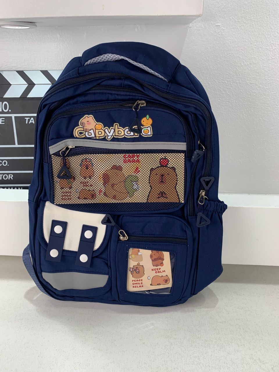 Sac à Dos Enfant Kawaii Capybara Bleu Nuit – حقيبة ظهر للأطفال أزرق ليلي