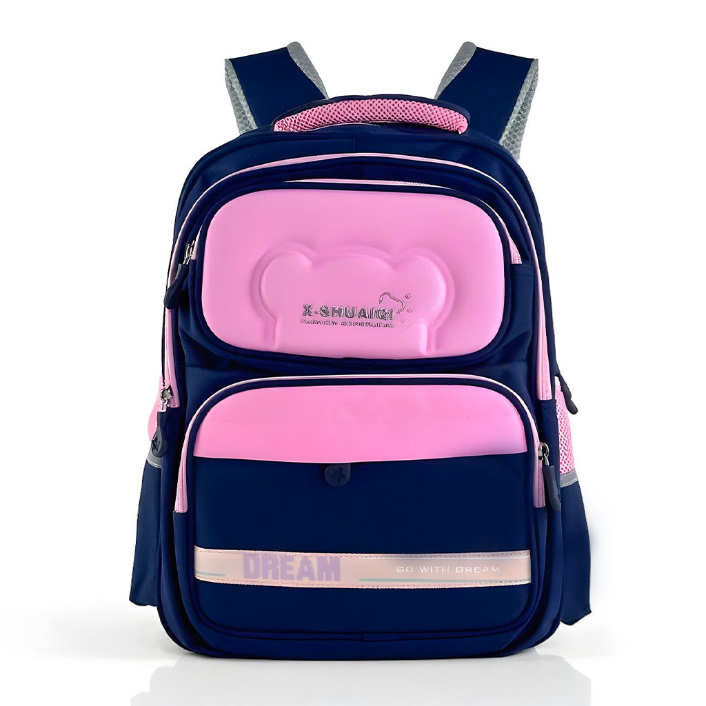 حقيبة الظهر من X-SHUAIQI® بتصميم ثنائي اللون (وردي وأزرق داكن) مثالية للتلاميذ في المرحلة الابتدائية أو للنشاطات اليومية.