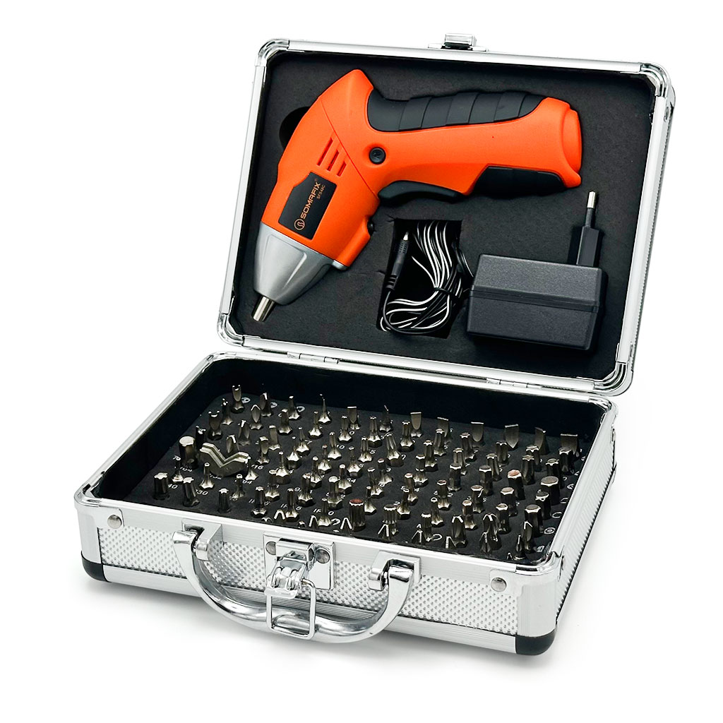 الأداة المثالية لأعمال الدقة سواء في المنزل أو في الورشة. يأتي في حقيبة منظمة تضم مجموعة واسعة من الرؤوس لتناسب جميع أنواع البراغي والمواد.